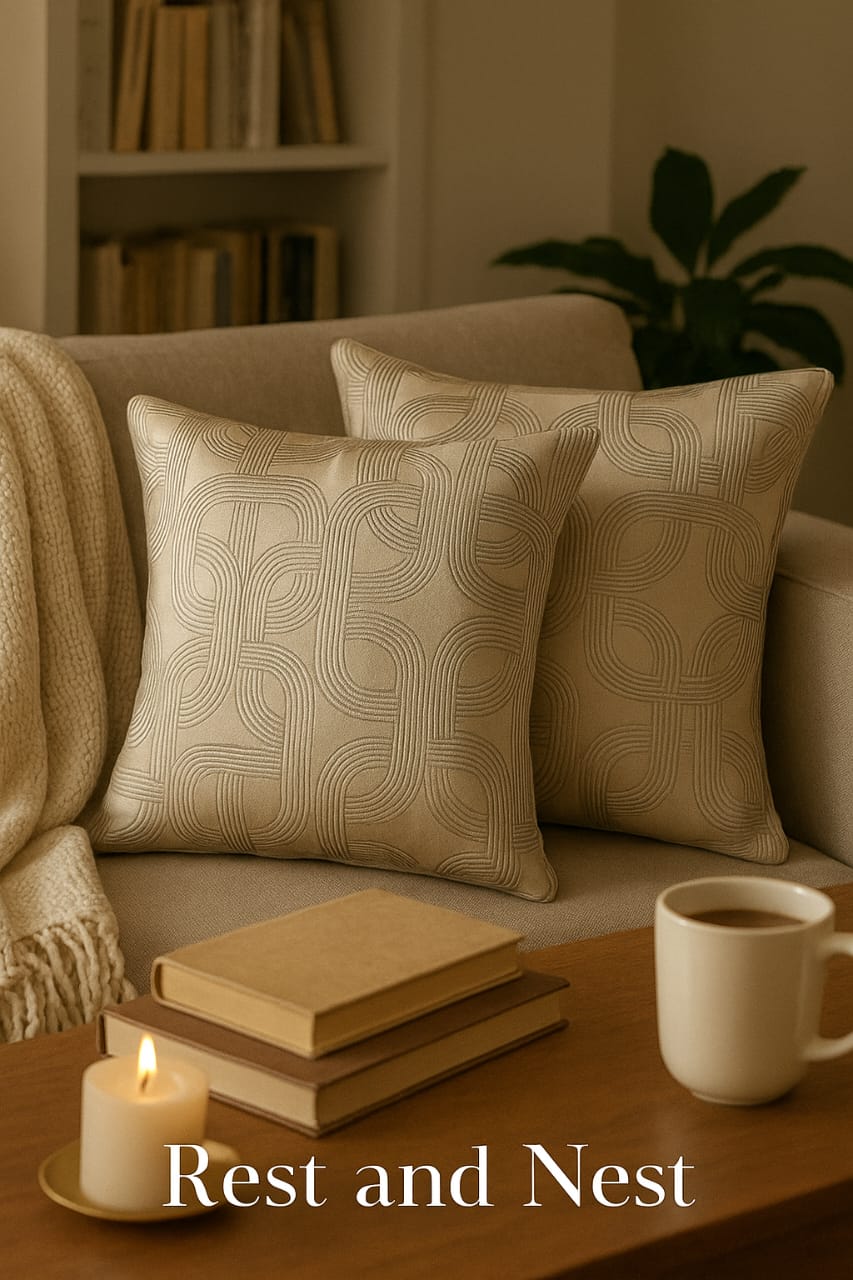 Polyester Satin Jacquard Cushion Covers – 16x16 Inch, 2 Pieces